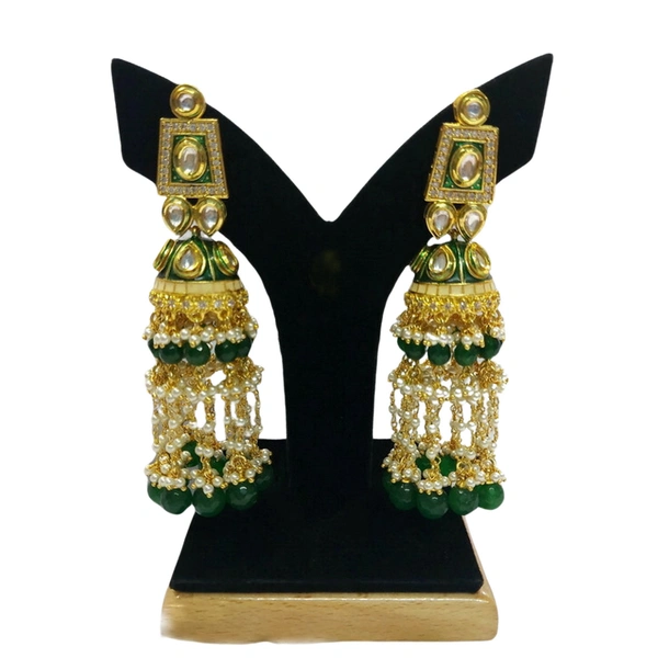 Royal Look Stunning Bridal Kundan Necklace Set With Long Earrings - Hjs-2206a