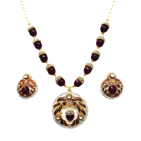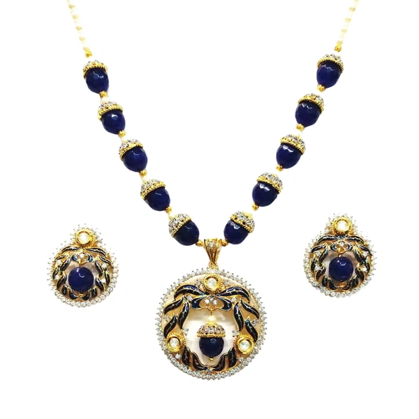 Enhance your jewelry collection with this classic yet contemporary piece. Its charm and elegance make it a must-have accessory that complements any outfit. Elevate your style quotient and make a statement wherever you go with the Classic Designer Black Pendant Set With Mala.