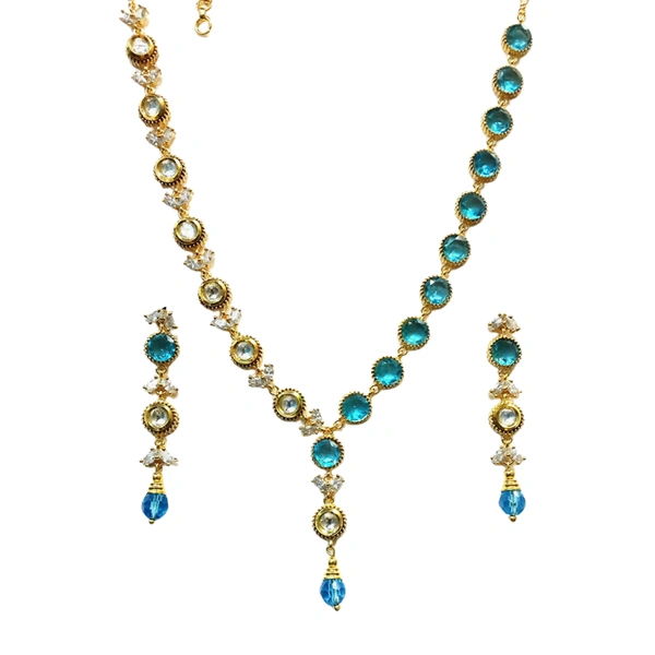 Slim Designer Sky Blue Stone Kundan Necklace Set - Hjs-724b