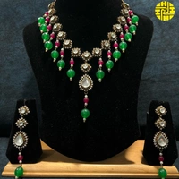 Designer Cz Kundan Antique Look Multi Color Necklace Set - Z-124ml