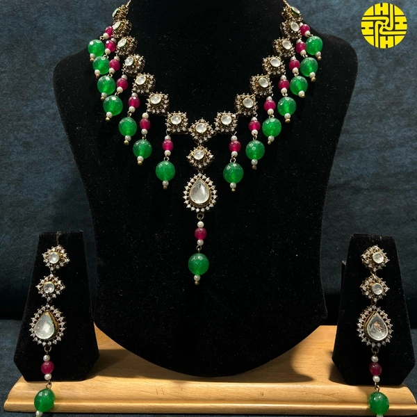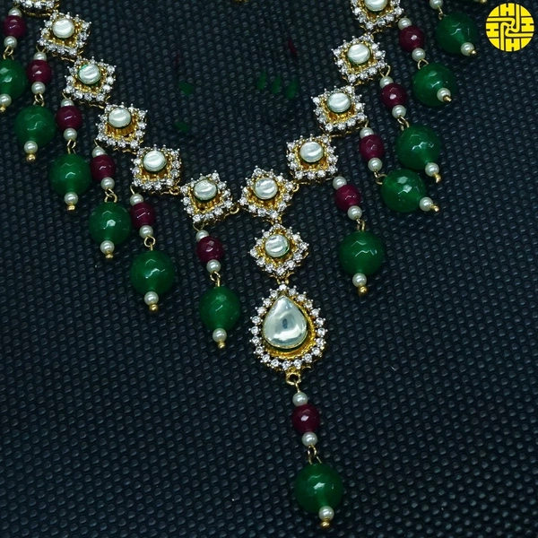 Introducing the Stunning Designer Cz Kundan Antique Look Multi Color Necklace Set - Z-124ml by Hasu Jewellers