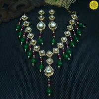 Embellished with sparkling Cz stones and traditional Kundan work, this necklace set is a tribute to classic design fused with modern aesthetics. The vibrant multi-color stones add a touch of sophistication, ensuring you stand out at any event, be it a wedding, a formal gathering, or a festive celebration.