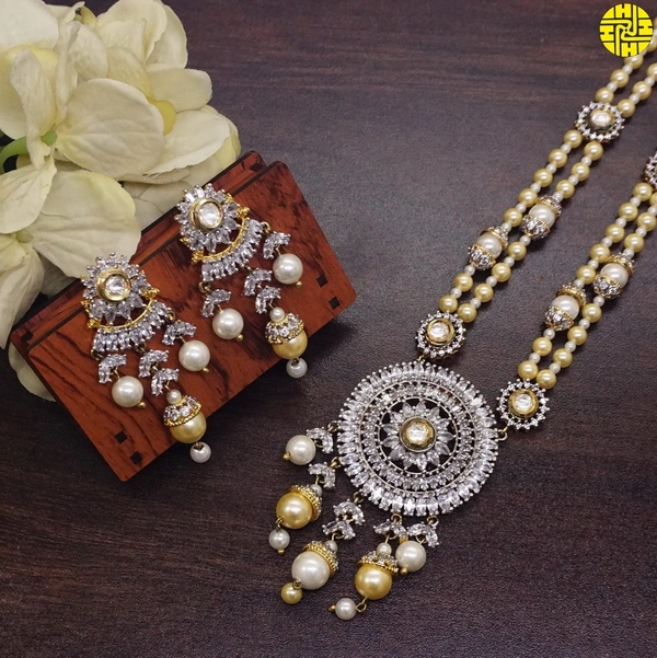 Discover Elegance with the Designer Long Pearl Pendant Set - F-241iv