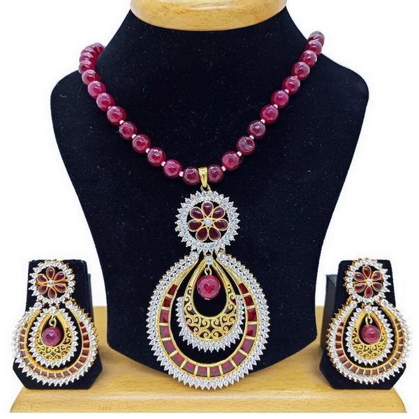 Diamond Inspired Designer Maroon Pendant Set - Hjs-0881d