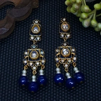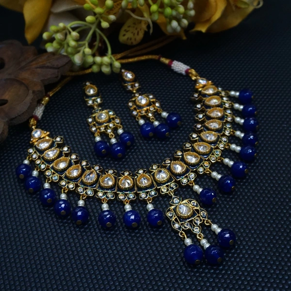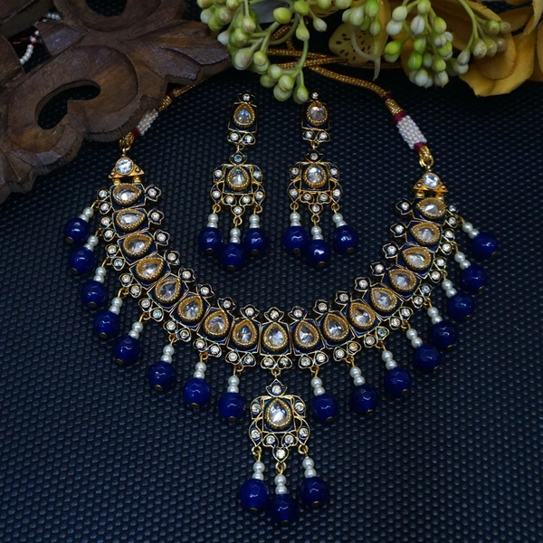 Elegant Designer Polki Meena Blue Necklace Set - J-237bl