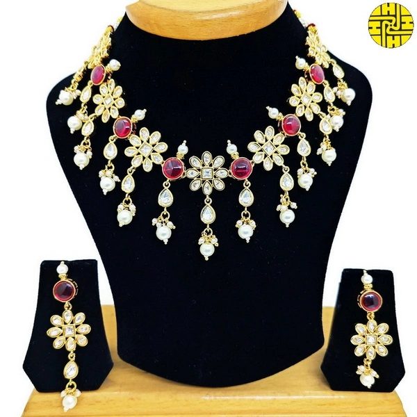 Introducing the Rich Looking Polki Kundan Ruby Choker Necklace Set from the exclusive collection of SM. This exquisite piece is designed to captivate and charm, ensuring that all eyes are on you. Whether you're attending a wedding, a formal event, or a festive celebration, this necklace set is the perfect addition to elevate your attire.
