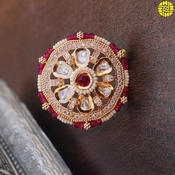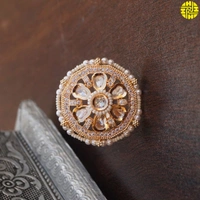 - Exquisite Design: Featuring a stunning rose gold finish that exudes warmth and romance, paired with sparkling Kundan and Cubic Zirconia (CZ) stones, this ring captivates at first glance.