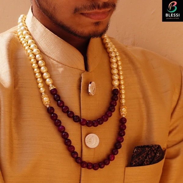 Introducing the pinnacle of ceremonial grandeur – the Groom's Glory In Imitation Splendore Two-Line Pearl Mala. Crafted with impeccable attention to detail by Blessi, this mala is a symphony of traditional aesthetics and modern design, making it an essential accessory for weddings and grand occasions.