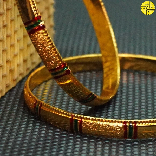 Introducing the quintessence of craftsmanship and style - High Gold Plating Designer Bangles Hmb 035a from Hasu Jewellers. Each piece in our collection is not just jewellery but a masterpiece designed to accentuate your grace and elegance. Whether you're dressing up for a festive occasion or adding a touch of glamour to your everyday wear, our bangles are the perfect choice.