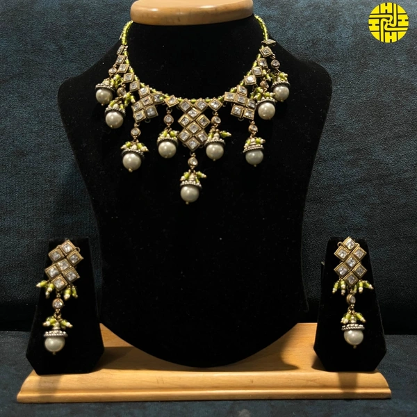 Meticulously crafted with a unique antique raw finish, this necklace set showcases the natural beauty of pearls in a way that is both luxurious and understated. The delicate shimmer of the pearls combined with the vintage finish makes this piece an absolute must-have for anyone who appreciates fine jewelry with a story.