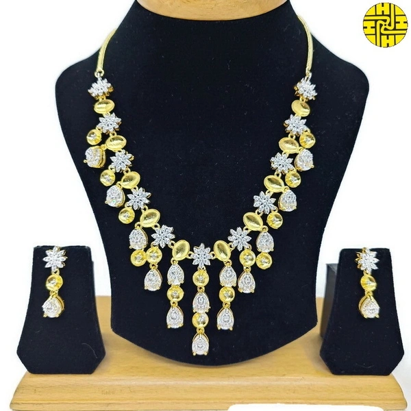 Introducing the Elegant White CZ Necklace Set - Hnc-003a by Hasu Jewellers