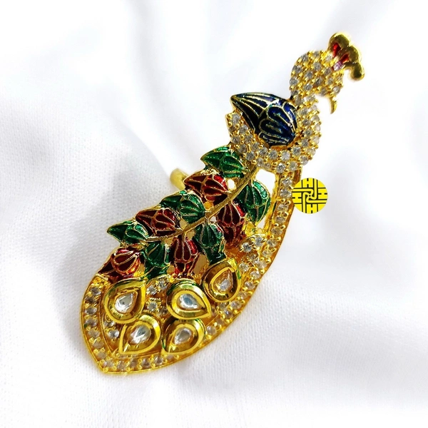 Introducing the exquisite Designer Peacock Multi Ring - Hjr-024a, brought to you by Hasu Jewellers. Crafted with meticulous attention to detail, this premium quality fashion jewel is a true embodiment of elegance and sophistication. Whether you're dressing up for a special occasion or adding a touch of glamour to your everyday look, this ring is sure to turn heads and capture hearts.