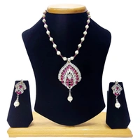 Designer Pearl Crystal Pendant Set - Hjs-033j