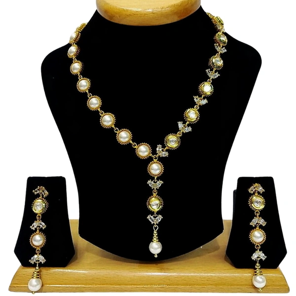 Beautiful Designer Pearl Kundan White Cz Necklace Set - Hjs-723a