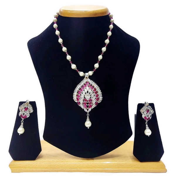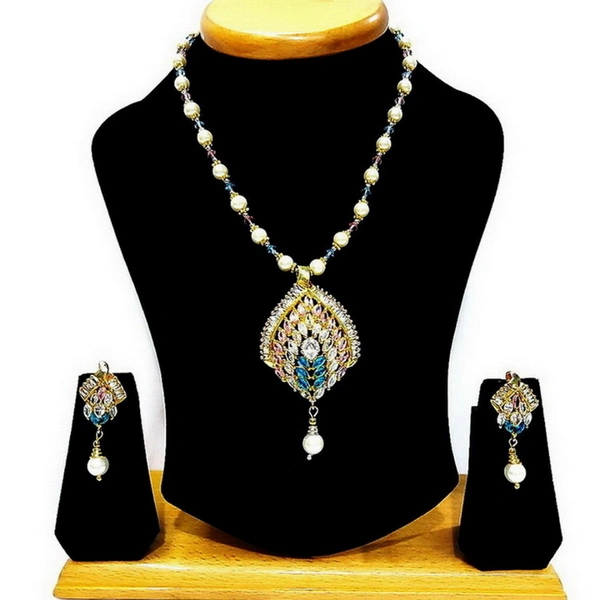Designer Pearl Crystal Pendant Set - Hjs-033g