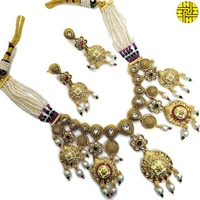 Adorn yourself with the splendor of tradition and the vibrancy of modern design with the Polki Kundan Multi Color Choker Necklace Set. Brought to you by the renowned brand SM, this necklace set promises to add a touch of elegance and glamour to your ensemble, making you the center of attention at any event.