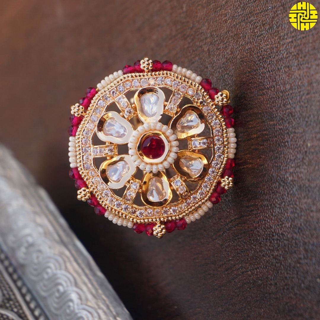 Make a bold statement with the Georgious Rose Gold Kundan CZ Ruby Ring and turn heads wherever you go. Its captivating design ensures that it will be a cherished addition to any jewelry collection.