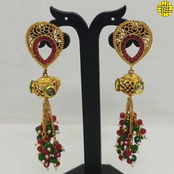 Introducing a breathtaking addition to any fashion-forward wardrobe: the Designer Long Pearl Earrings TM-011mlt from Hasu Jewellers. Crafted with meticulous attention to detail, these earrings feature an exquisite design that blends timeless elegance with contemporary style.