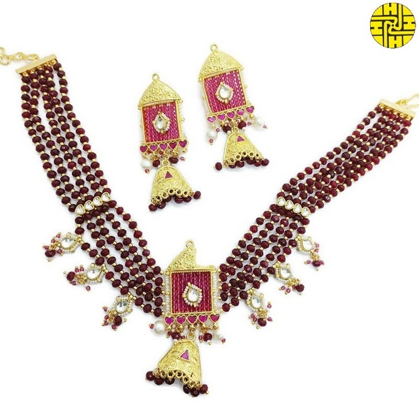 Embrace timeless elegance and unparalleled style with the Stylish Polki Kundan Ruby Choker Necklace Set from the renowned brand SM. This exquisite piece is designed to captivate attention and elevate any outfit, making it a must-have accessory for any fashion-forward individual.